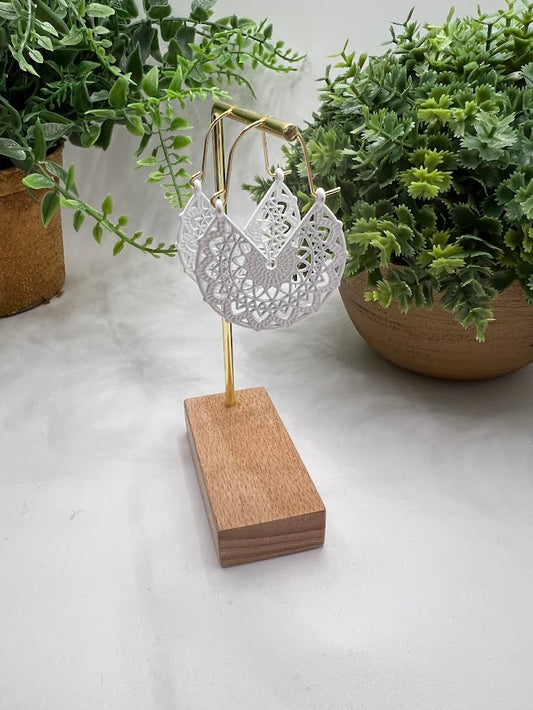 Gorgeous And Feminine White Lace Earrings With Gold Accents