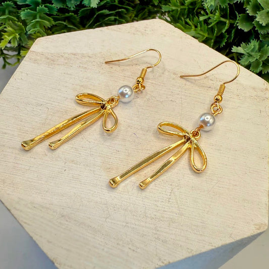 Beautiful Bling Black Bow Earrings With Golden Accents