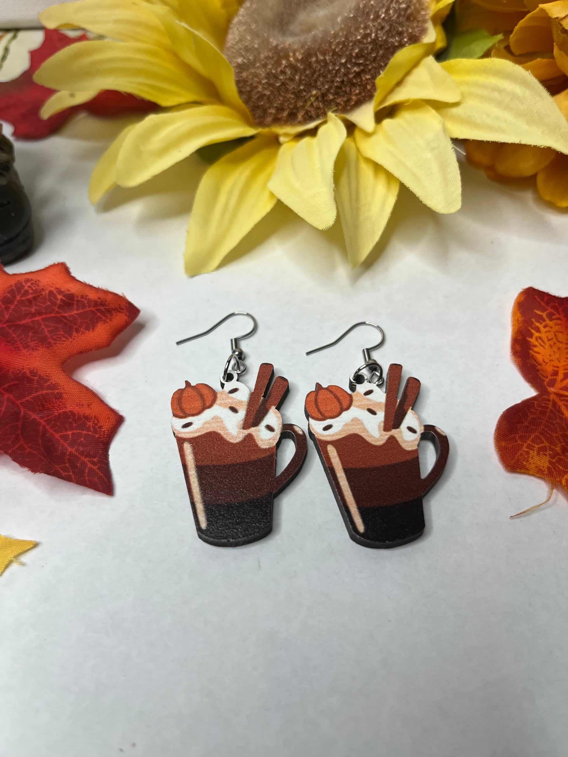 Drink up these adorable pumpkin latte's, or you could wear them as earrings and look cute too.