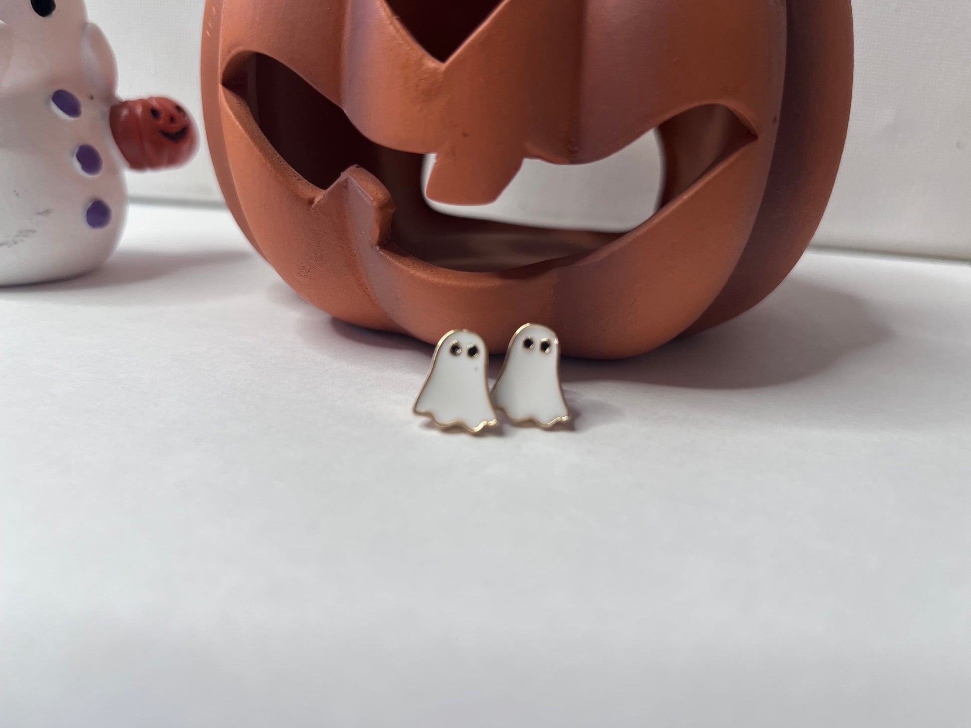 These little ghouls are absolutely adorable! They are metal studs that stand under and inch in length. These little ghosts are a subtle yet fun Halloween accessory that you can enjoy this Holiday season.