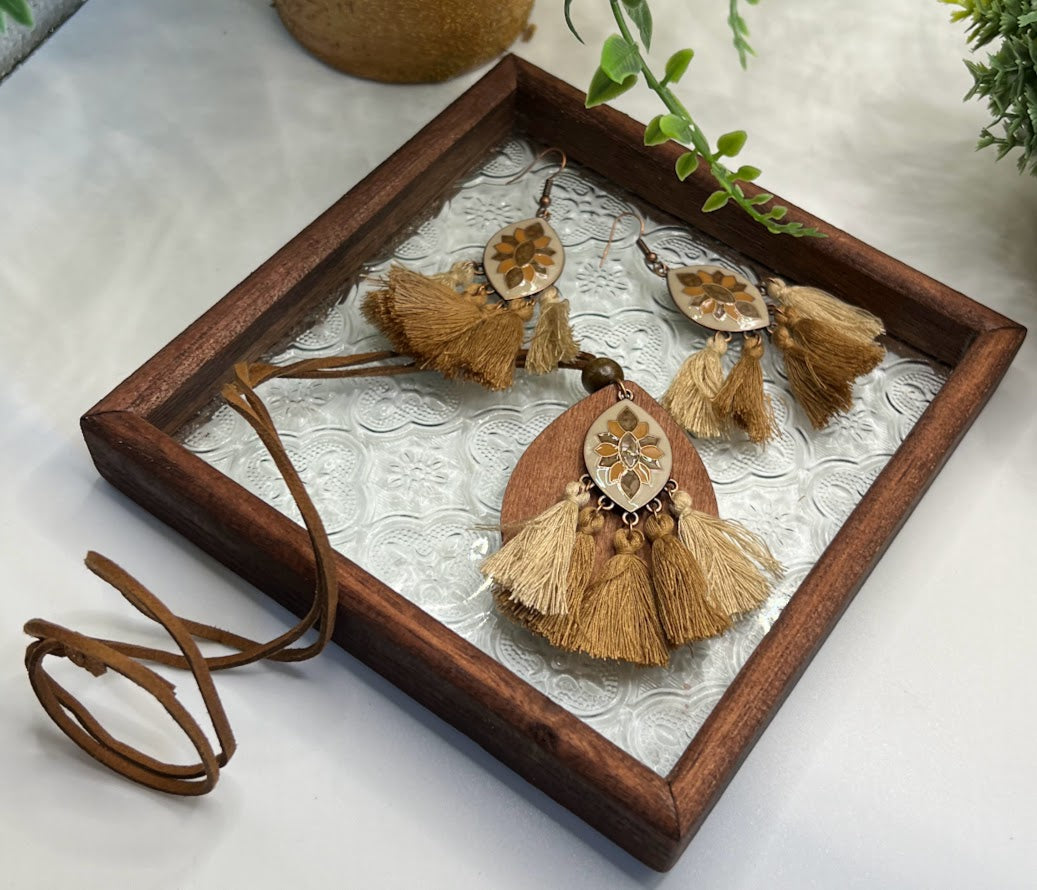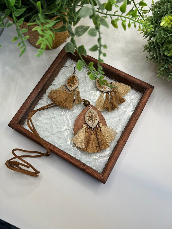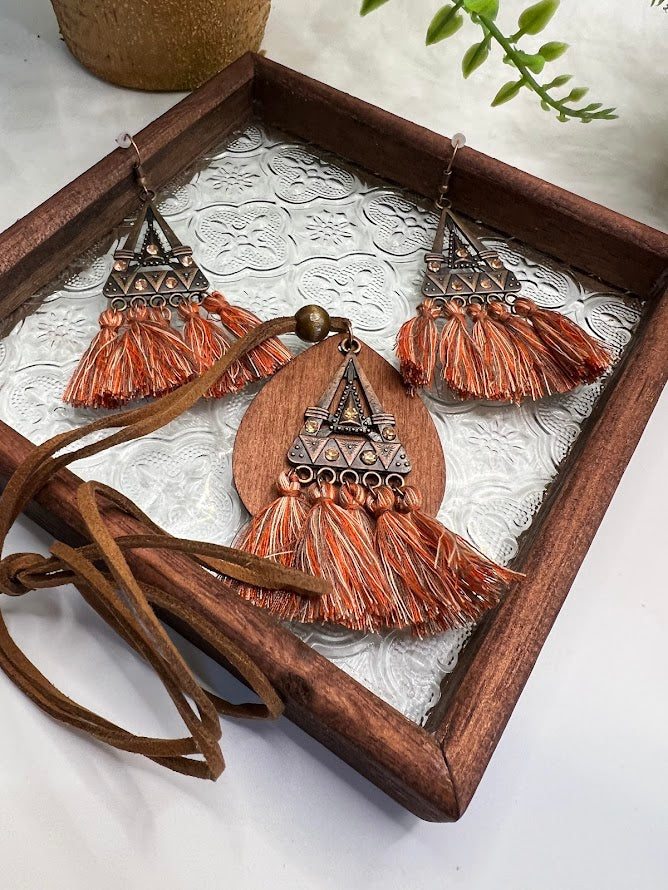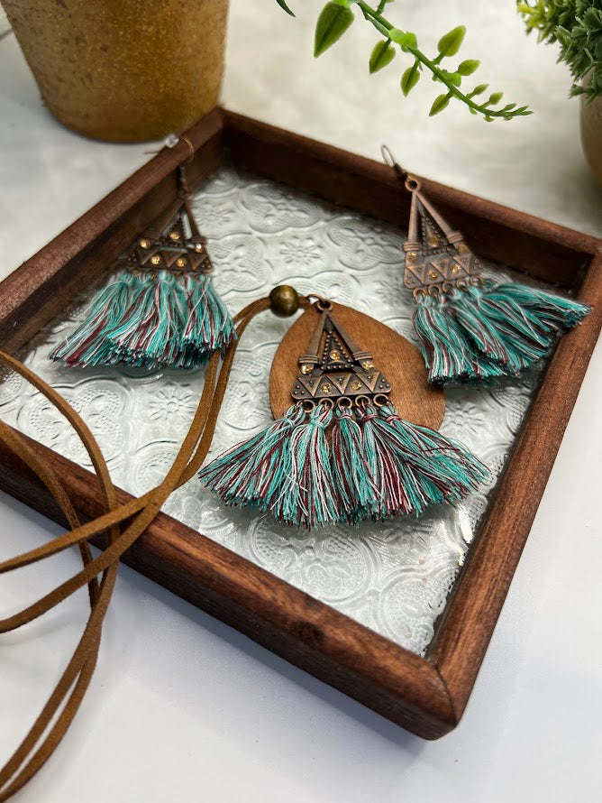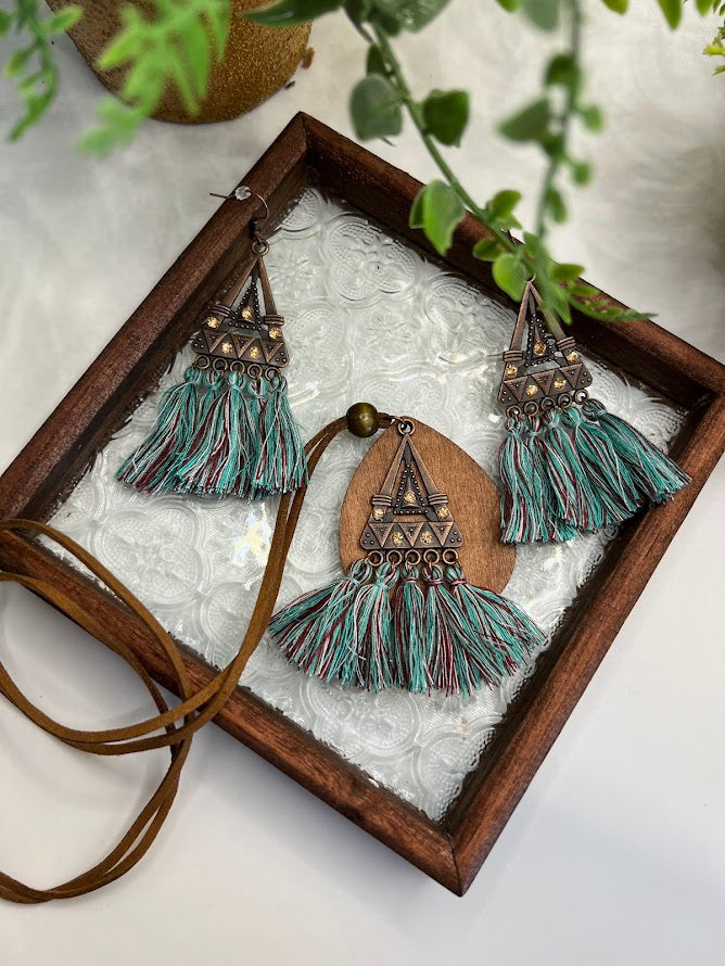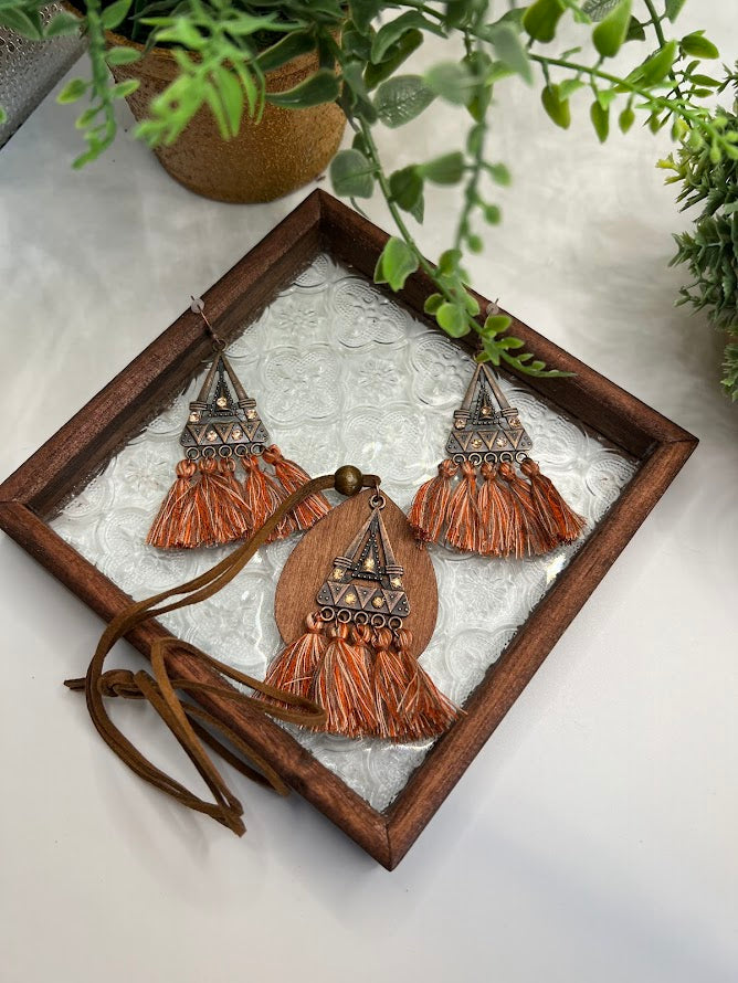 Western Vibes Earrings & Necklace Set With Lots Of Fringe